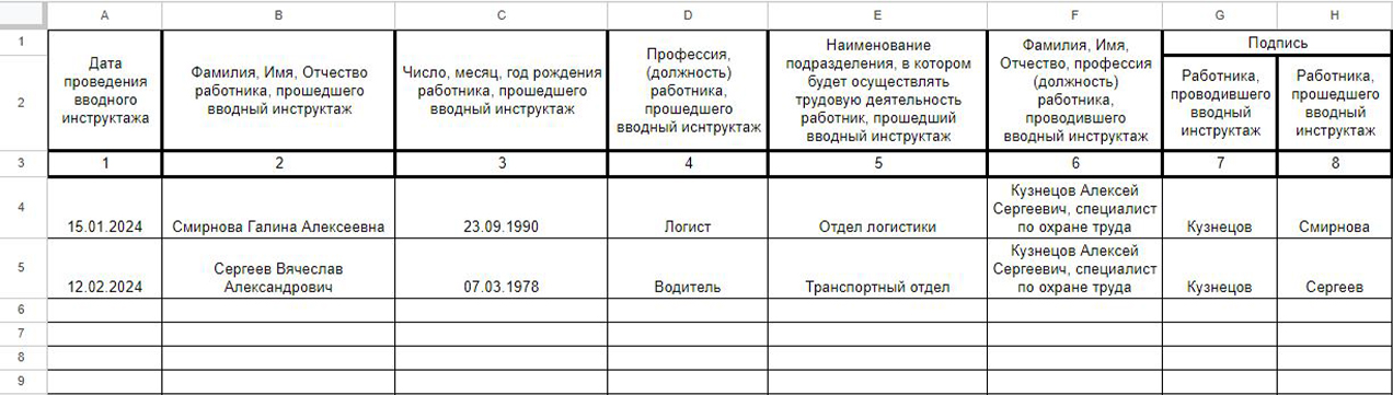В журнале или другом документе о регистрации необходимо фиксировать каждого сотрудника, который приходит в компанию. Дата устройства на работу должна совпадать с датой проведения вводного инструктажа.