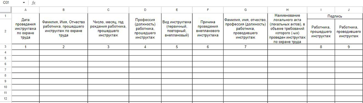 В этом журнале тоже недопустимы исправления и помарки, а фамилию, имя, отчество и дату рождения пишите полностью. А еще укажите вид инструктажа: первичный, повторный или внеплановый.
