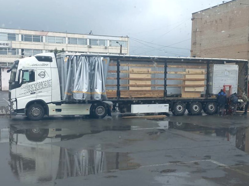 Машины для доставки оборудования застройщикам брали в аренду. Когда вышли на стабильный объем заказов и посчитали расходы на арендованный транспорт, поняли, что выгоднее инвестировать в свой автопарк. Для перевозки по городу купили пару «газелей», а для длинномерных грузов и доставки в другие города нам понадобилась фура. Мы нашли фирму, которая распродавала свой парк и приобрели за наличные  первую сцепку — тягач Volvo с полуприцепом Krone.