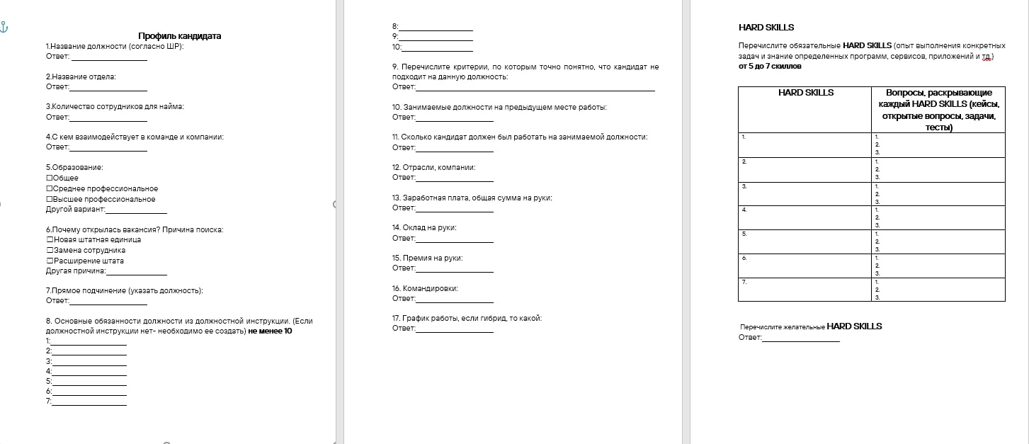 Чтобы систематизировать информацию, полезно составить профиль кандидата — документ, в котором его портрет будет описан в деталях: от возраста и опыта работы до личностных качеств и увлечений.