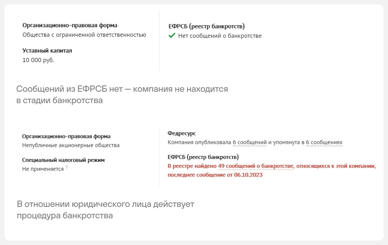 Действующих партнеров тоже нужно периодически проверять, даже если они никогда не подводили и платили вовремя. У компании с хорошей репутацией тоже могут появиться проблемы: суды, долги по налогам или процедура банкротства.