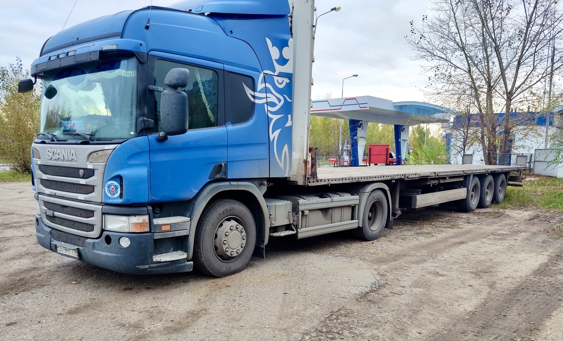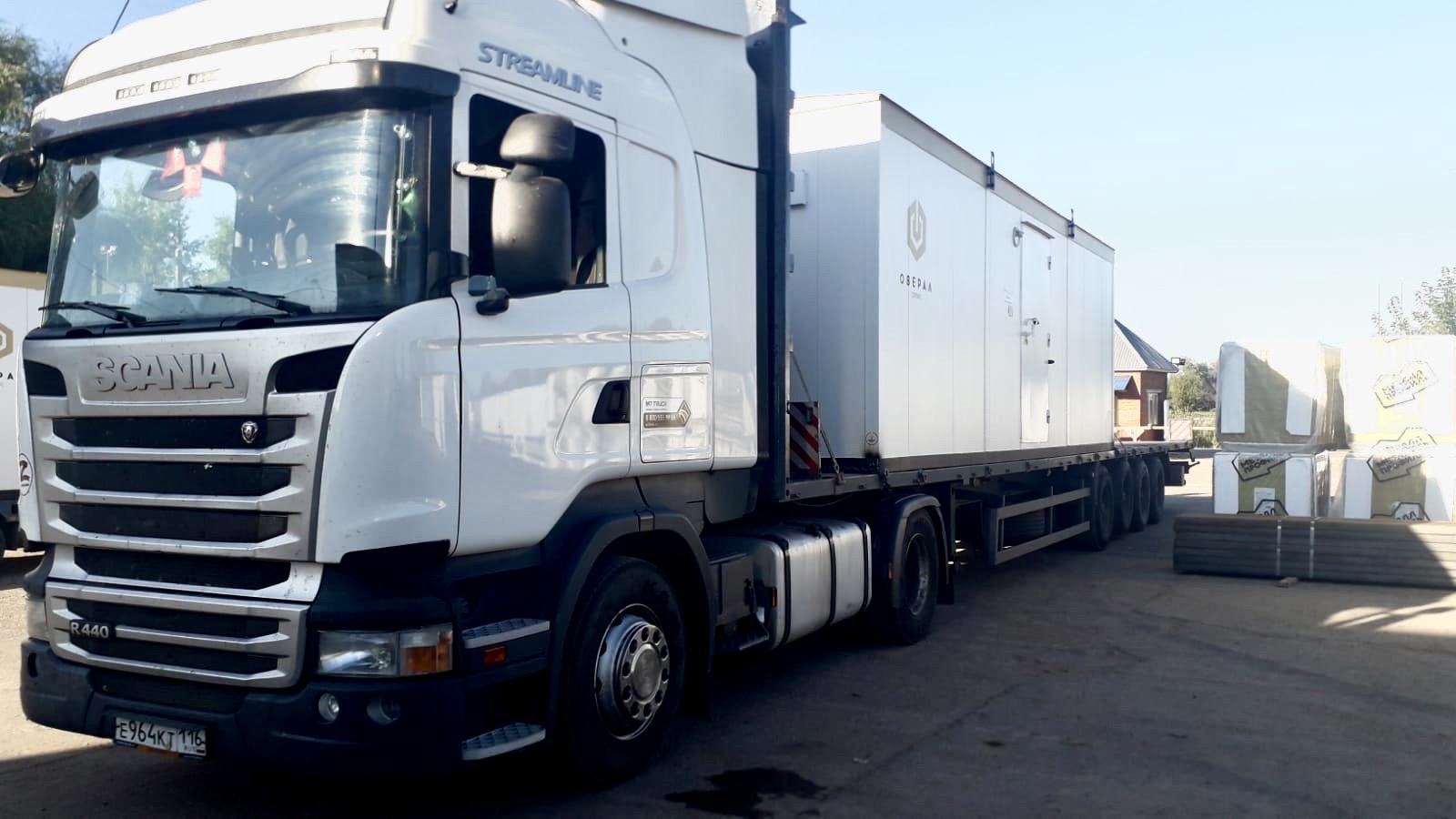 За первые полгода работы мы выполнили 20 рейсов и стали расти в заказах, и тут как раз столкнулись с нехваткой стороннего транспорта. Именно поэтому решили купить свою сцепку: взяли тягач Scania с тентованным полуприцепом Krone. Мы разобрали этот полуприцеп и немного доработали — получилась площадка для перевозки негабарита.