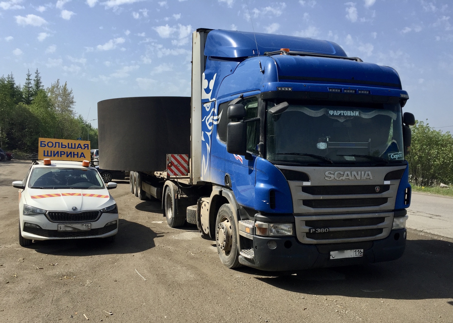 Самый сложный рейс у нас был из Ульяновска в Горнозаводск, это в Пермском крае. Везли для цементного завода металлическое кольцо диаметром 5,15 м — это как две фуры рядом поставить, вплотную друг к другу. Сложность с такими размерами в том, что единое разрешение не получить: дороги достаточно узкие, груз не проходит. Приходится делать сразу несколько документов: здесь часть оформил, там часть оформил. Плюс нужны автомобили прикрытия: они предупреждают других водителей о том, что едет очень широкий груз, который выступает на встречную полосу. Нужно быть особенно  внимательным, чтобы ничего не задеть. Мы везли это кольцо два дня. Проблем по дороге не было, но запомнилась огромная ответственность перед заказчиком и другими участниками движения.