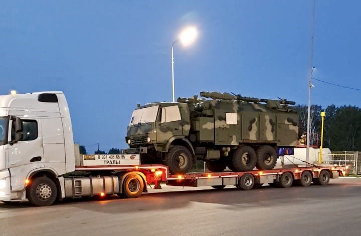 При транспортировке военной техники нужны качественные крепления: мы используем цепи, которые растягиваются крест-накрест, чтобы исключить смещение груза вбок и по ходу движения