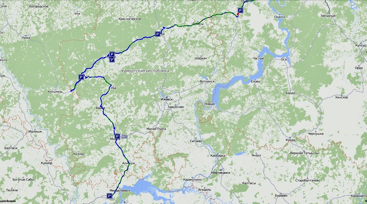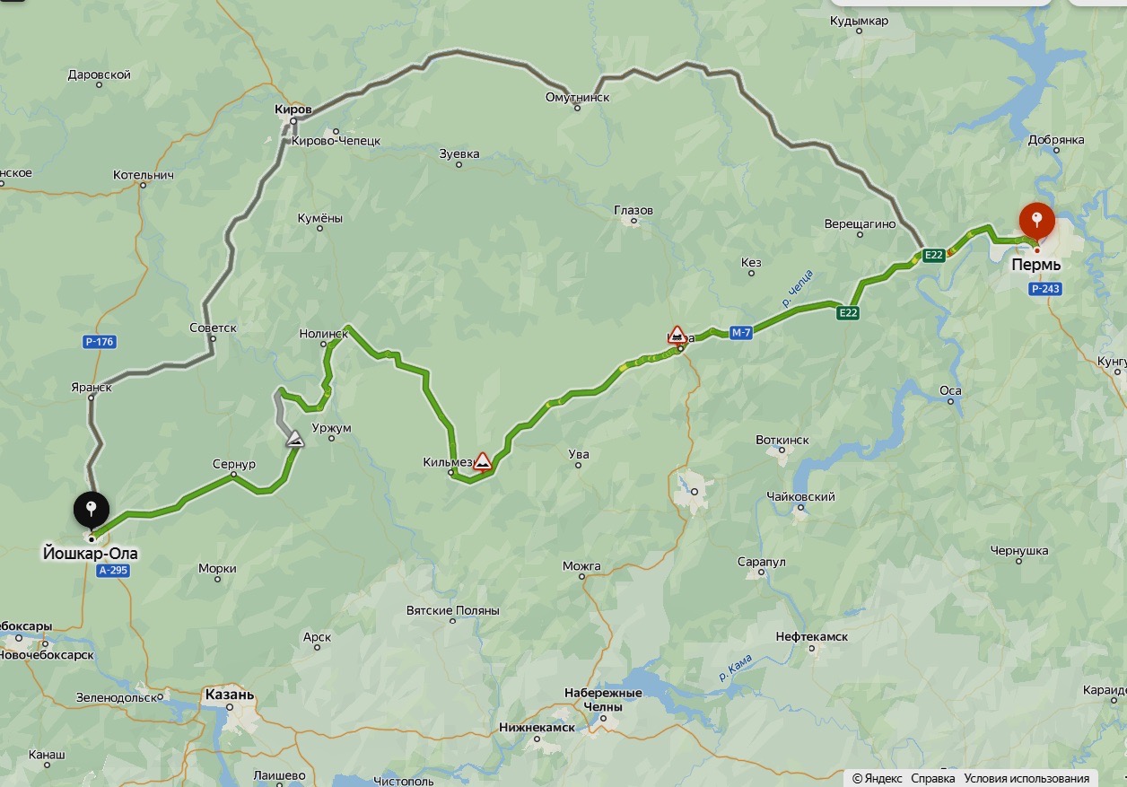 В итоге получился вот такой маршрут: я успел развернуть водителя, когда он был в Кильмези