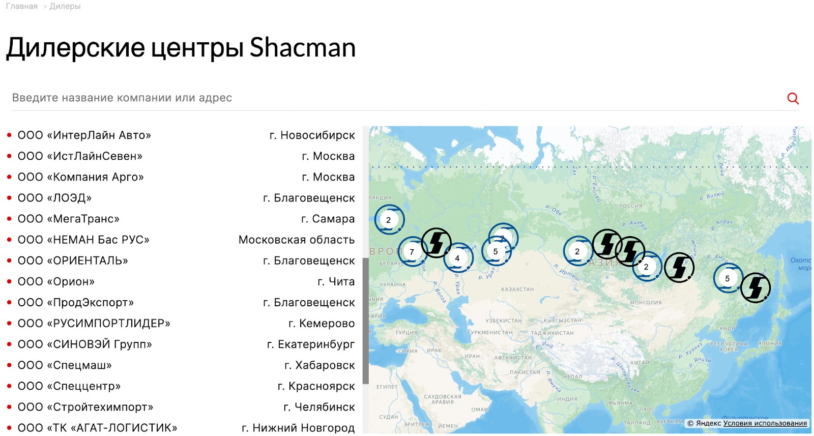 На конец 2025 года у Shacman есть официальные дилеры по всей стране