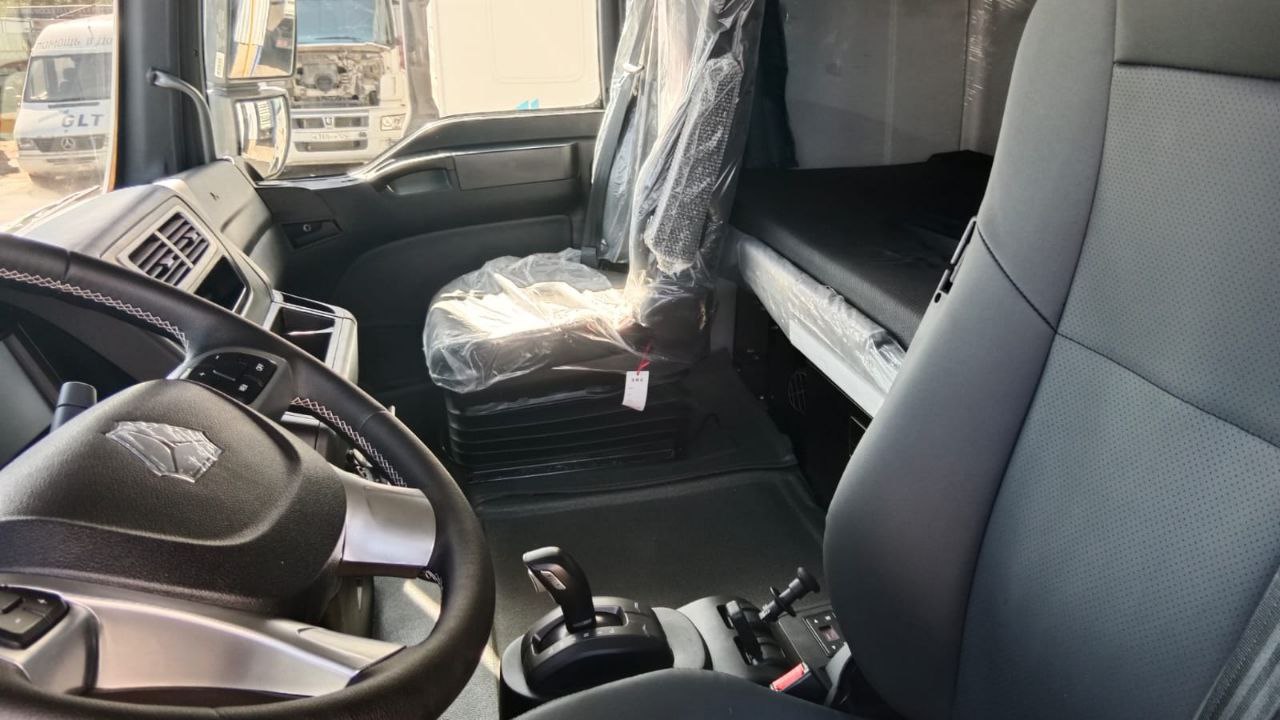Снаружи установлены камеры кругового обзора, ярко светят диодные фары. Раньше это можно было найти только в европейских тягачах за дополнительную плату. А китайский производитель предлагает такие опции по входной цене.