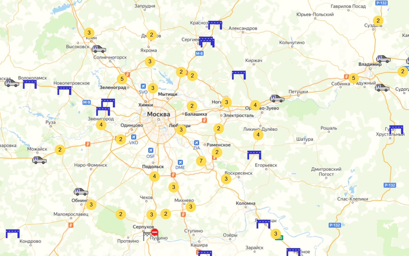 По данным разработчика системы «Платон», всего на федеральных трассах установлено 485 рамок. Их расположение можно посмотреть с помощью специальных карт и приложений: «Фура», «МимоПлат», «Где Платон», «Нерудас». Но, кроме стационарных рамок, камеры «Платона» устанавливают и на легковые машины. Такие устройства отследить сложнее: они меняют местоположение. Но с помощью тех же онлайн-сервисов можно узнать, где они стоят чаще всего. Например, в «Нерудасе» общее количество рамок и камер на авто в 2024 году — более 900.
