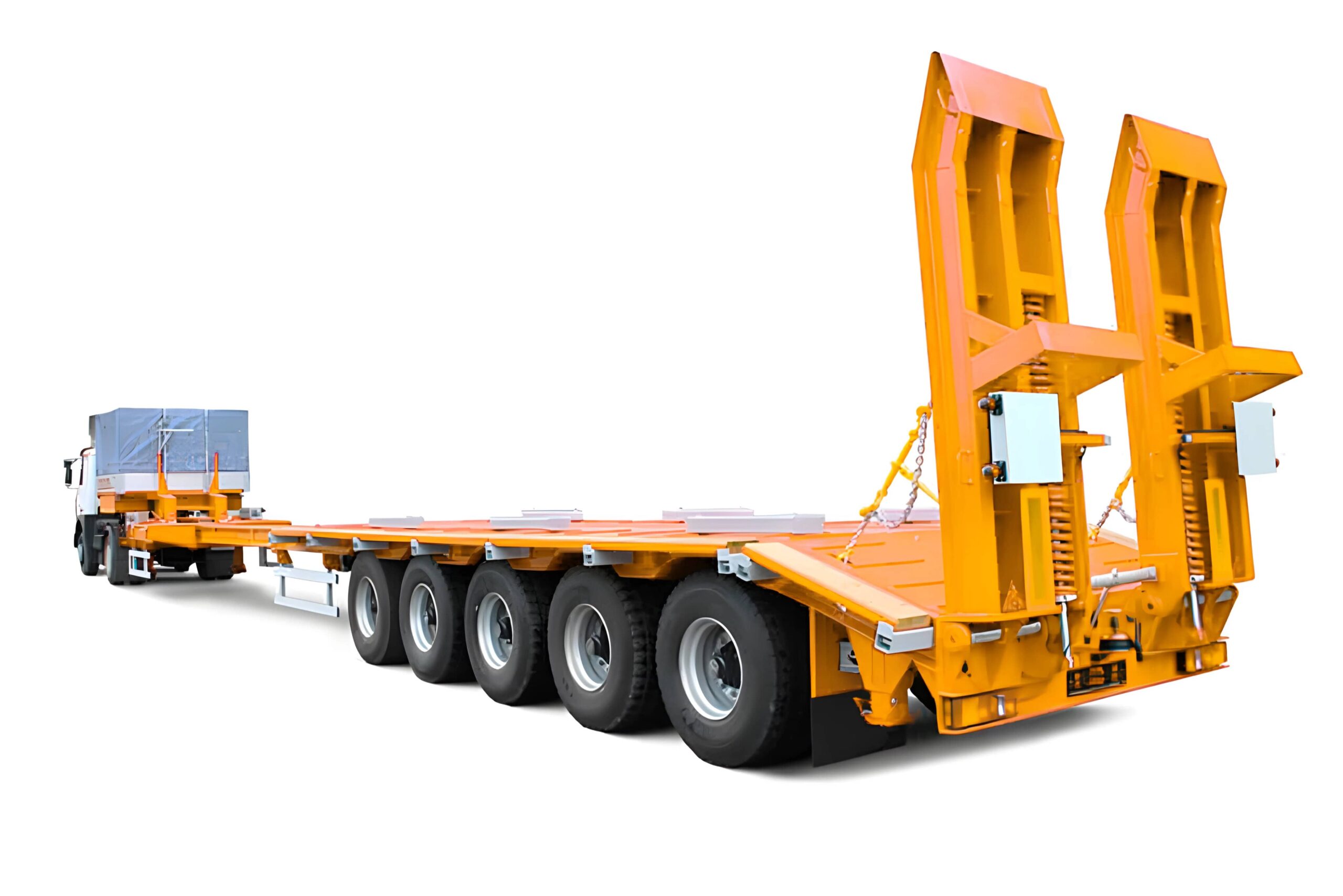 14. Низкорамный трал. Отличительная черта этого полуприцепа — низкий кузов, что позволяет загружать высокие и тяжелые объекты, не превышая ограничения по высоте на дорогах.