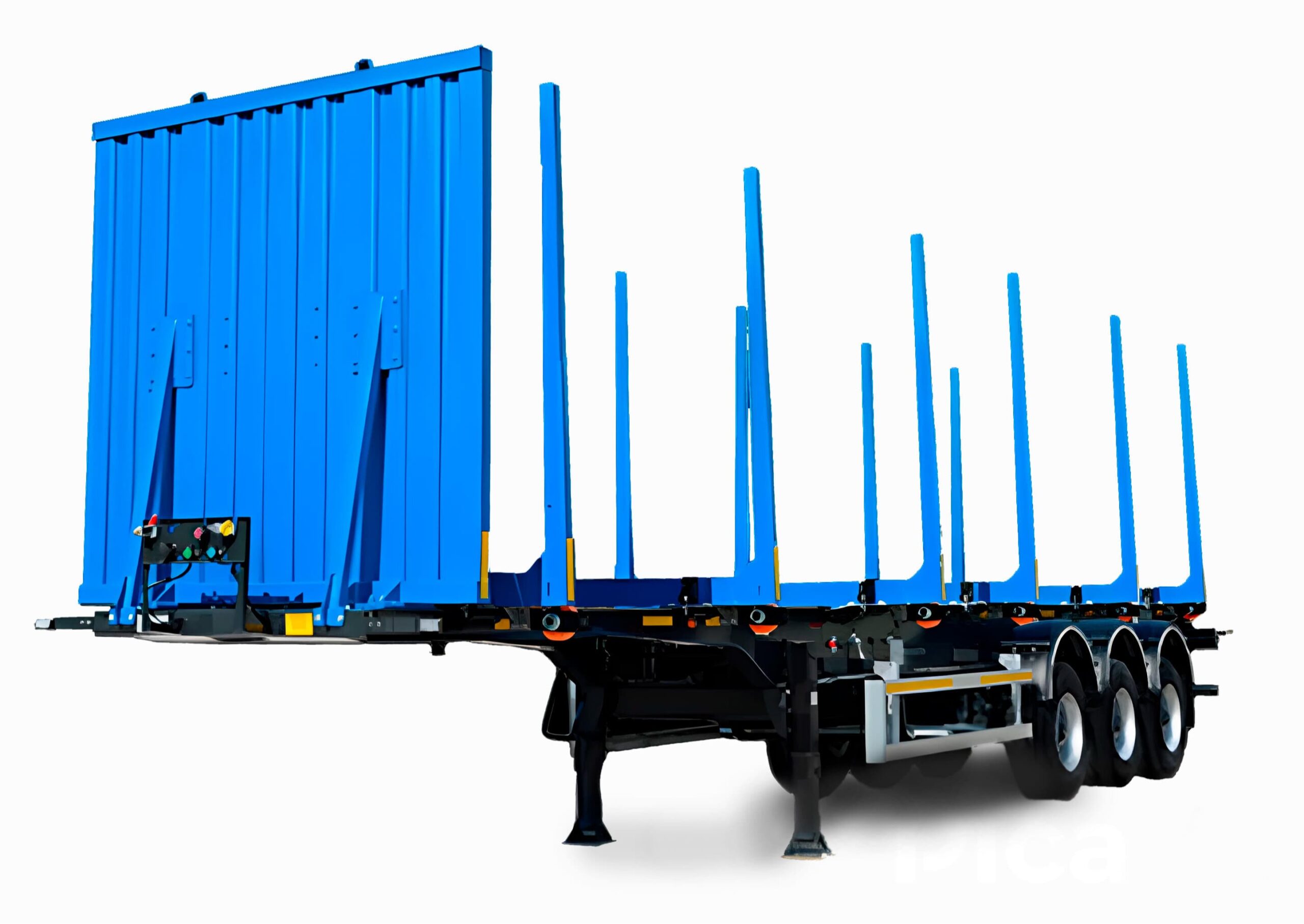 12. Лесовоз. Специальный полуприцеп, на котором удобно перевозить бревна и пиломатериалы. Оснащен бортами или специальными креплениями, которые удерживают бревна на месте.