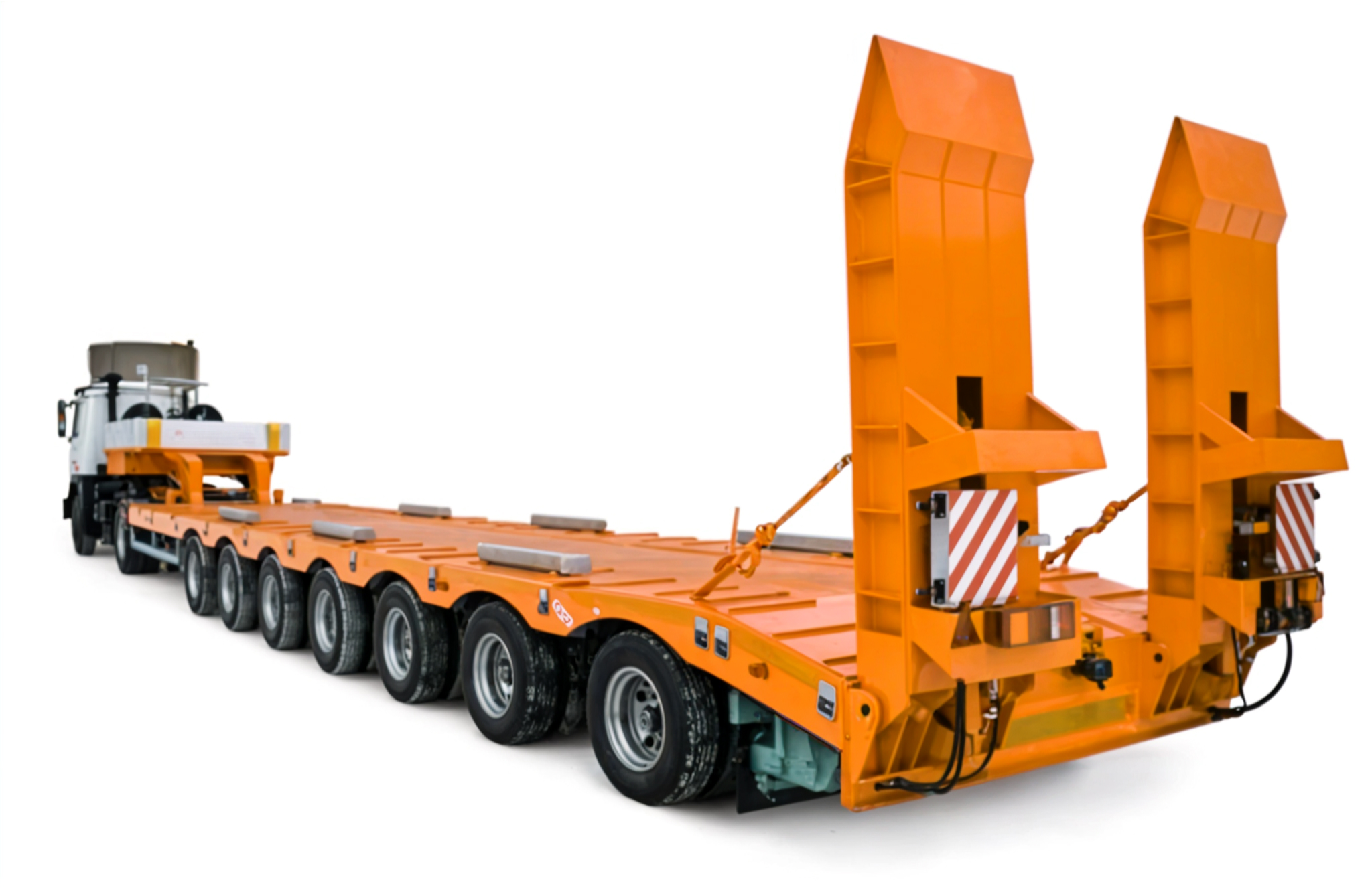 Может быть оснащен откидными рампами для удобства подъема и спуска грузов. Используется для транспортировки крупногабаритной техники, промышленных машин и других тяжелых грузов.