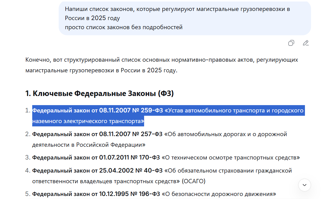 Грузоперевозчики могут использовать ChatGPT или DeepSeek в качестве поисковика, чтобы спросить про тренды грузоперевозок или запросить обзор платных дорог в России. Модели предоставляют общую информацию на основе данных из сети.